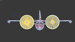 Undercarriage animation is production ready, with animation set up for extension/retraction, steering, and suspension compression.