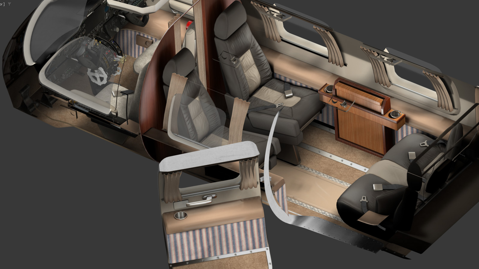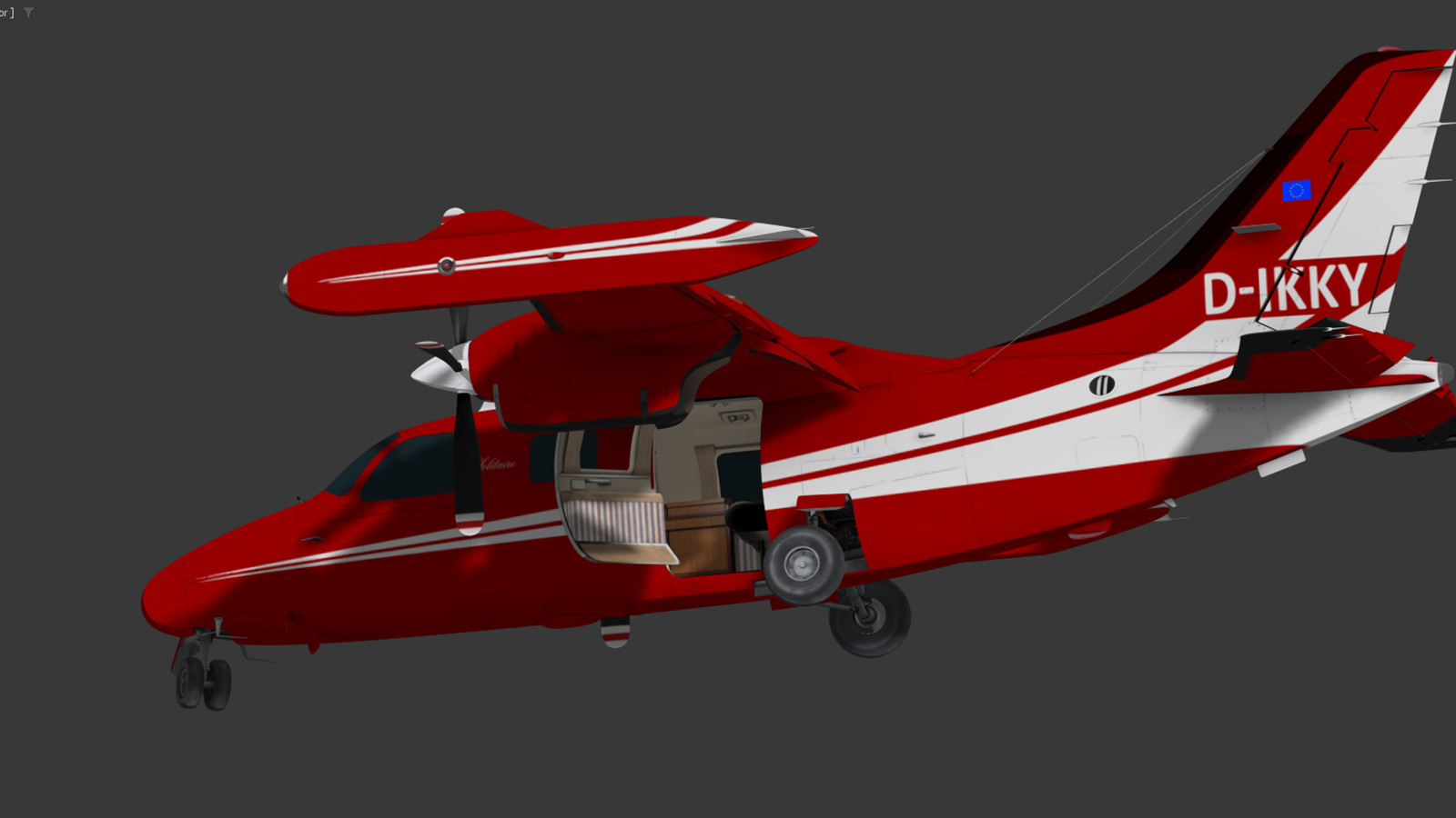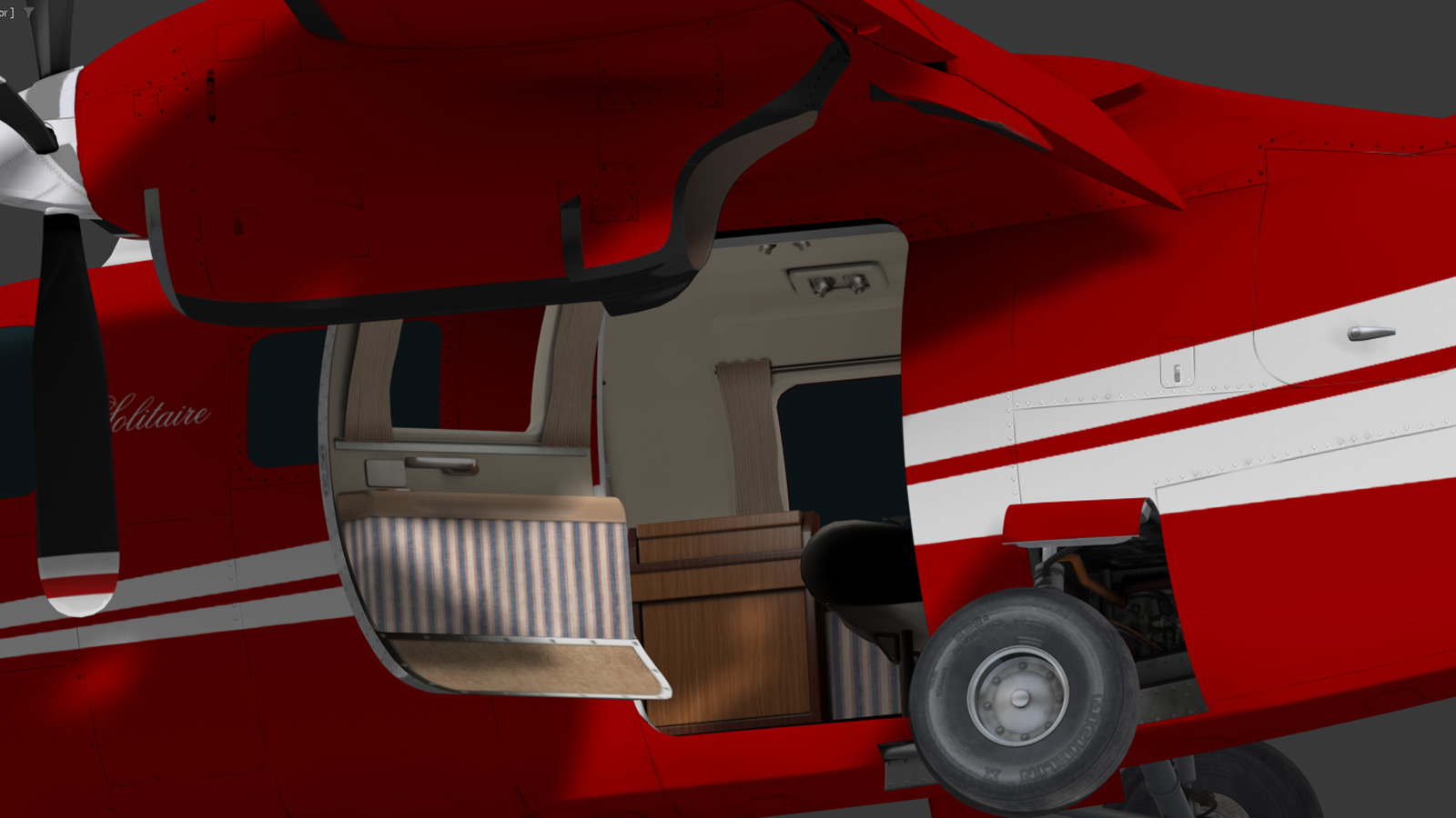 Correctly animated exterior: flaps, ailerons, undercarriage, doors, elevators, rudder, trim-tabs, etc.