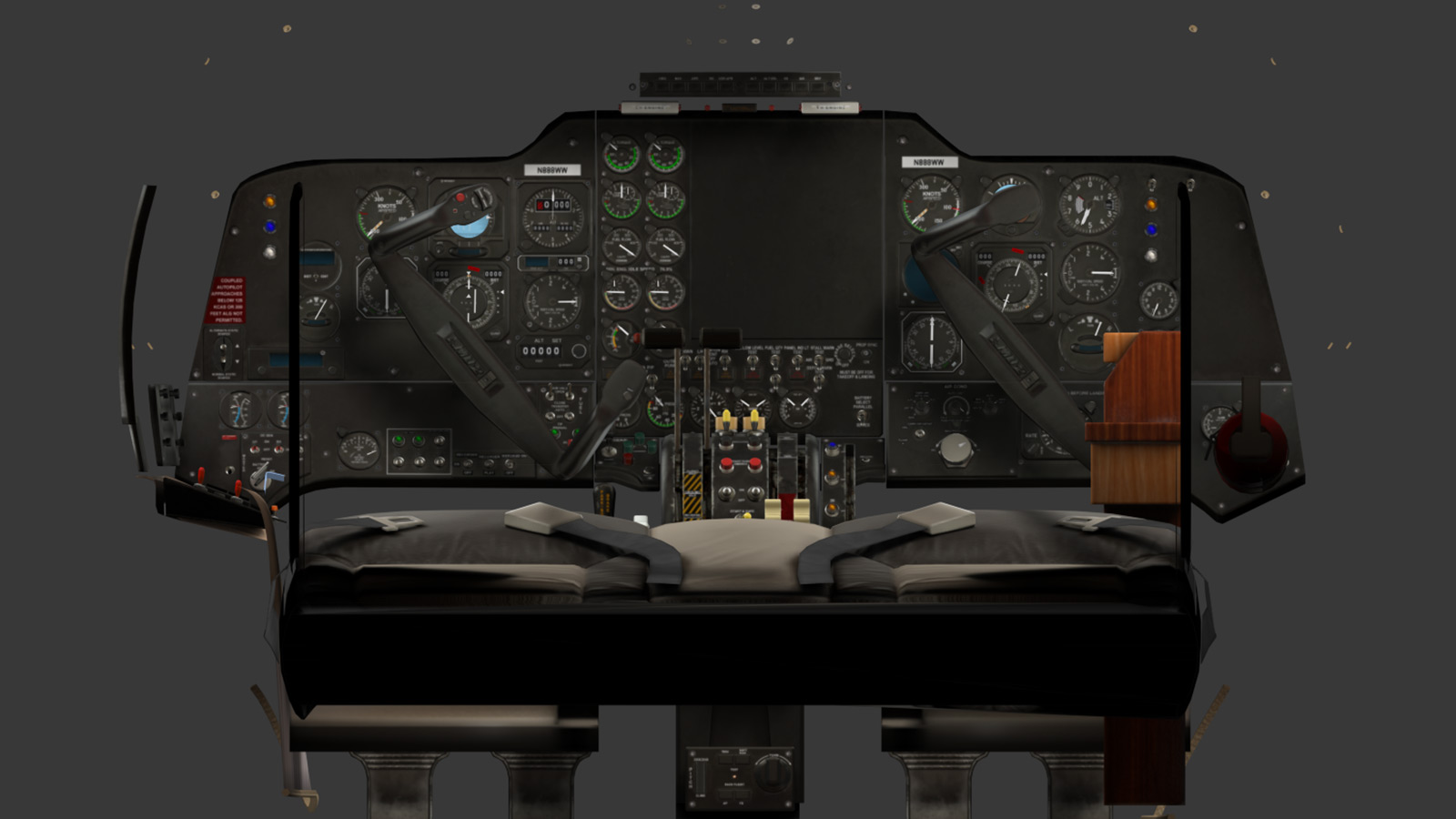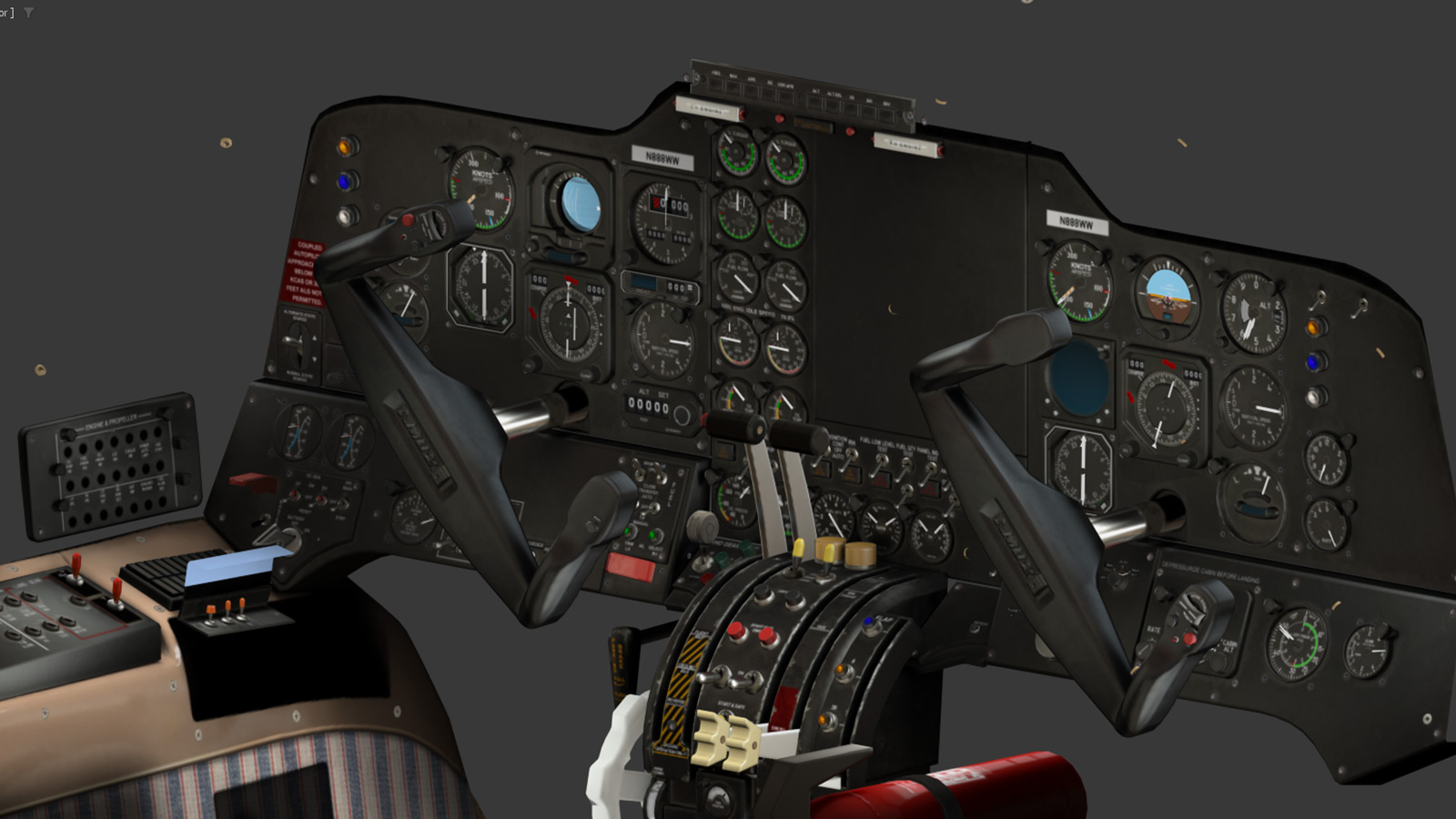 Fully animated inside and out; including all cockpit switches, knobs, dial indicators and controls.